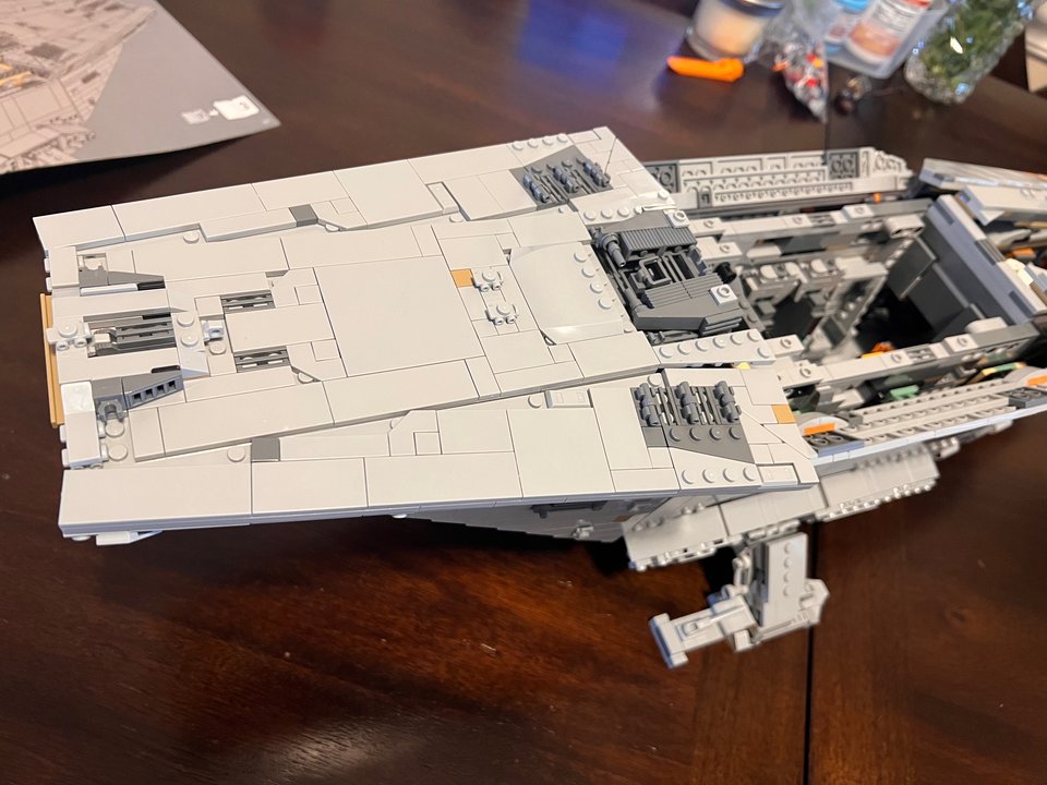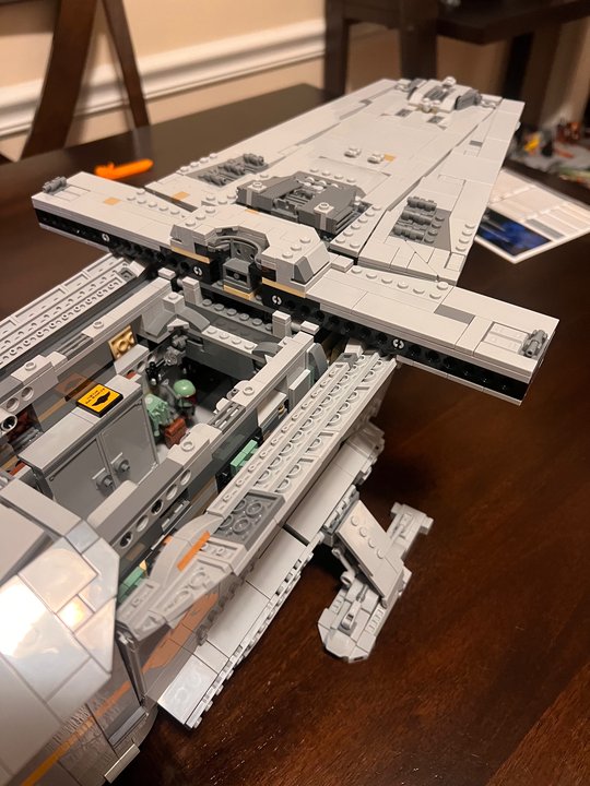 The Razor Crest assembled. It's moderately heavy set that is easy to carry.